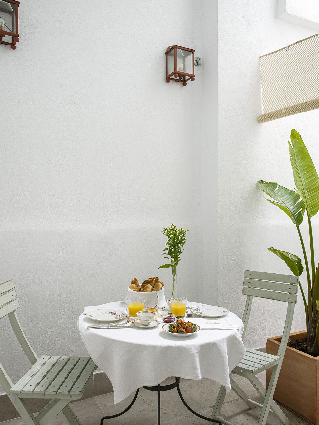 Cuarto de 20 m2, en la planta baja por lo que es fácilmente accesible directamente desde el patio. Destaca por dos elementos principales: consta de una pequeña terraza privada y al tener una gran altura de techos, la cama cuenta con un dosel que dota al cuarto de una sensación de gran intimidad.